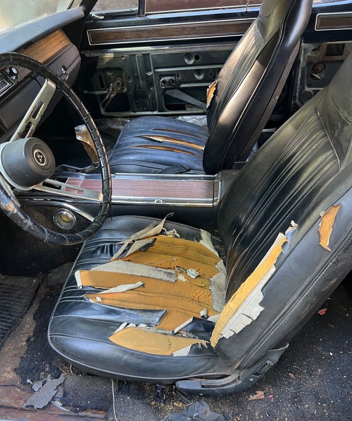 Though the R/T looks rough, the seller says it runs under its own power and the transmission goes through the gears as it should. A new gas tank has recently been installed so the delivery of fuel to the carburetor should work fine. There is plenty of surface rust in the trunk and likely to be found in all sorts of other places. The paint color is Cream, which looks more yellow to me. The odometer reads 32,000 miles, which could more likely be 132,000. If you’ve been looking for an R/T to restore, could this be the one?