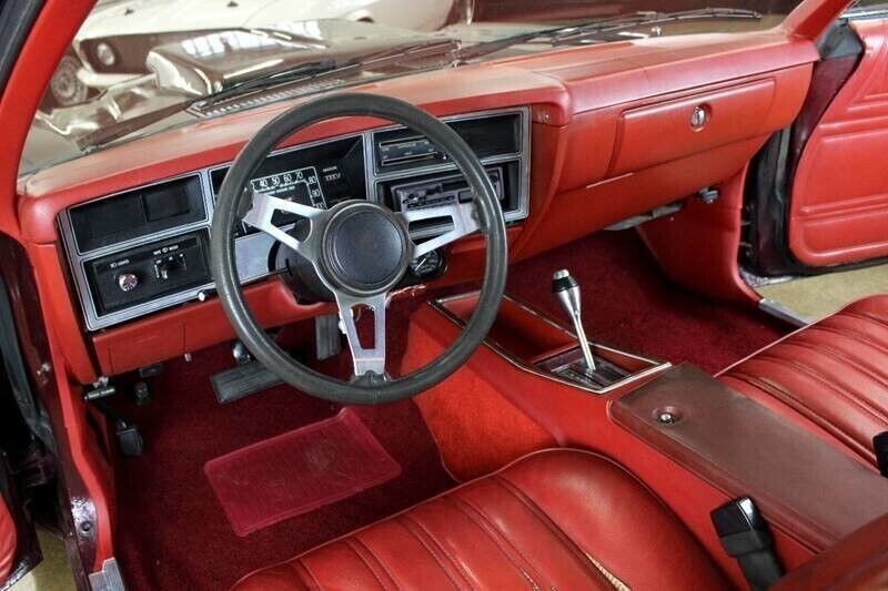 All of the Plymouth Super Coupes were painted the same color, Crimson Sunfire, and while the seller says that this car’s repaint has a few flaws, it’s hard to tell in the photos. What may really set it off is the use of yellow, orange, and red striping, which were also redone. Open the doors and you’ll find a red vinyl interior that shows little, if any, wear for being 45 years old.