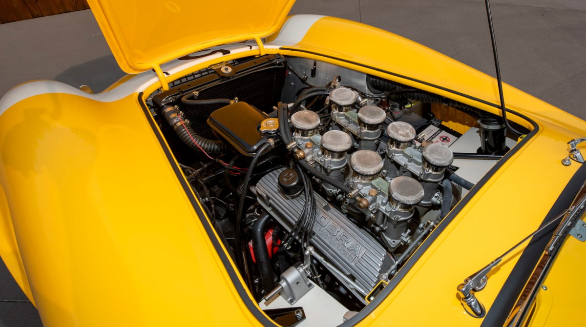 As we noted the other day, most older racing cars and track vehicles don’t have much value if they’re not historic or affiliated with a significant driver and/or team. That’s not to say they’re not fine to use as a track car, but it’s not likey to become much of an investment vehicle (unless you happen to be the next Michael Schumacher in the making.) Cars like this Cobra are on another level because the factory put it together with the best parts they could get their hands on, and this one is the only “Stage III” example fitted with quadruple Weber carburetors among other upgrades. The distinctive yellow paint was special-ordered by the customer to match their tow vehicle.
