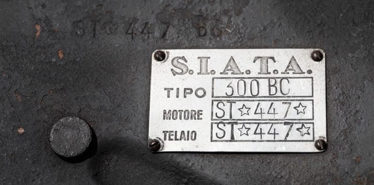 The Siata being offered here is said to have been in the same family for over 45 years and is highly original. It is powered by a Fiat 1100cc engine, which is original and numbers matching. This particular 300 BC is known as telaio (chassis) and motore (motor) number ST 447, as seen on the tag.