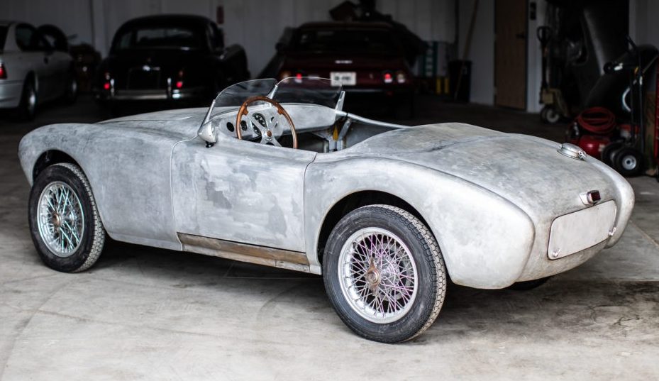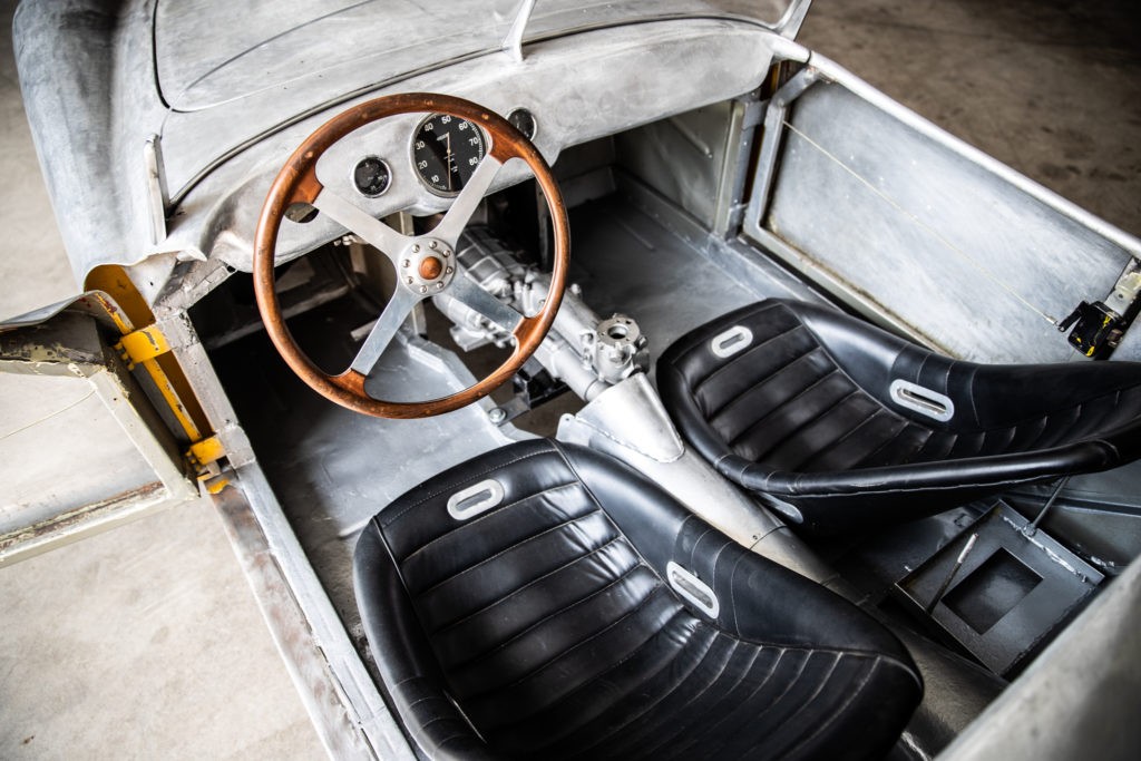 The aluminum-bodied Siata 300BC is a stunning looking car. Siata went to great lengths to ensure that the car was as light and strong as possible, as the intention was to power the car by a small capacity engine, but still be able to extract respectable performance. The body of this one has been prepared for paint. There is some evidence that the Siata used to be finished in a fairly bright shade of yellow, but it isn’t clear if this is the car’s original color. It would be nice to be able to return the paint to original because while records are a bit vague, it is believed that only somewhere between 40 and 50 of this model were built. The chassis number of this car indicates that it was likely the 48th 300BC built, which would appear to confirm the higher build estimate. The car features its correct Borrani wire wheels and Marchal headlights.