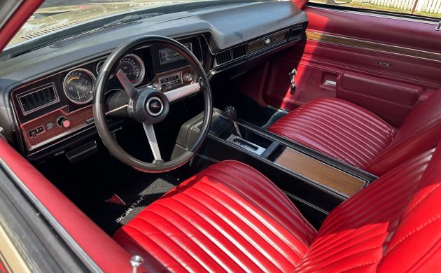 The 73 was really dealt a blow with the mandate to the ridiculously big front bumpers. That was too bad as the rest of the car was really pretty good. I am a fan of red interiors and it may not be original but looks great with this particular car. I think the 455 engine option ads some definite value to the 73. Too bad Pontiac never did build a real SD-455 GTO.