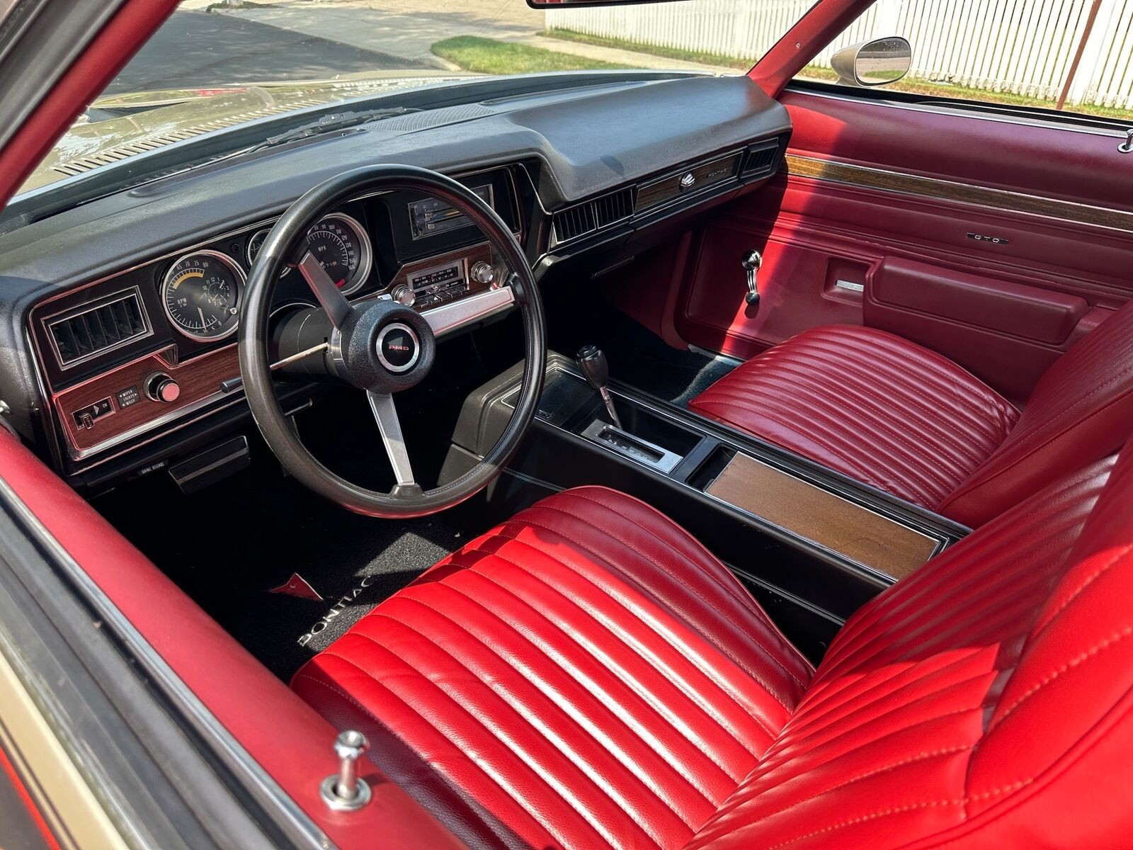 The 73 was really dealt a blow with the mandate to the ridiculously big front bumpers. That was too bad as the rest of the car was really pretty good. I am a fan of red interiors and it may not be original but looks great with this particular car. I think the 455 engine option ads some definite value to the 73. Too bad Pontiac never did build a real SD-455 GTO.