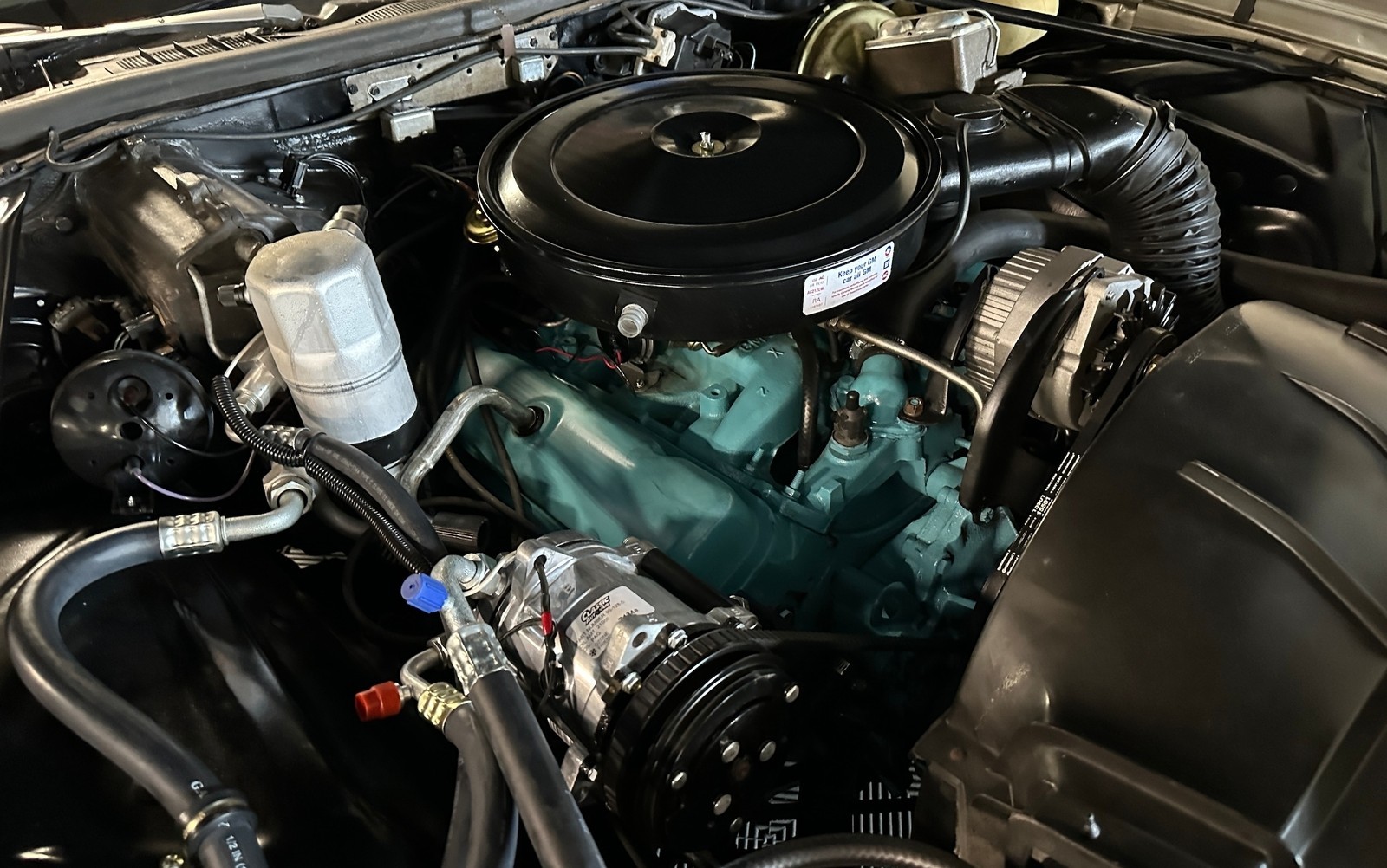 Looks sharp, the first car I ever bought was a ’73 Lemans Coupe in Ascot Silver. Although this one has 105 more cubes, two more barrels, the A/C has been updated, and it has an electric choke. A fun cruiser or burnout machine.