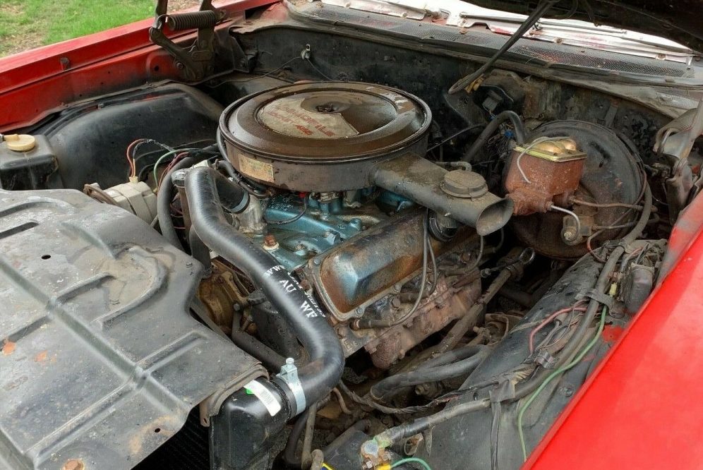 Way too much for what you are getting… but interesting comments on the W30 possibilities. It does have the W25 hood, and emblems, but the owner says “matching numbers” on the 455, Wrong heads and intake for a W30, but… it does appear that the fenderwells are or were originally red (part of the W30 package), the black finish or paint appears to have rubbed off in several areas. It is possible someone installed them, or black were not available maybe after an accident and painted, I’ve seen painted ones before. It does appear to have the correct 70 only front fenders, but that front end is a mess. The bumper is way out of whack, the left side headlights appear to be equally out of whack. The center’s of the 442/Cutlass bumpers bent easily the first time they were towed with the old style hook/lifts, Interesting car, but it needs a serious amount of work. The owner should be ecstatic with the bidding so far.