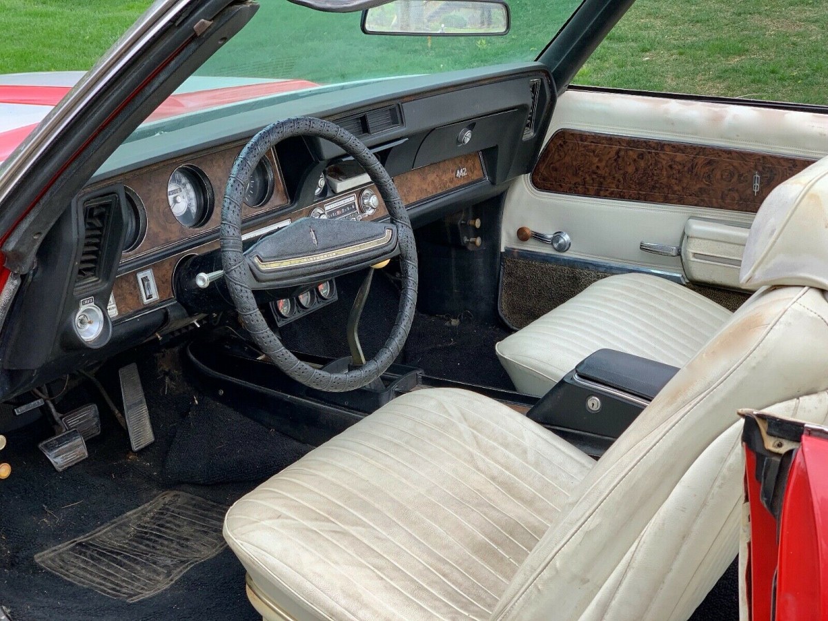 The 442 was all about what was under the hood, and in 1970 it was a 455ci V8. In this car, that monster engine is hooked to a 4-speed manual transmission, while you also get power steering and power front disc brakes. This is a full, numbers-matching car, and that means that there will be 365hp available under the right foot. The owner says that the car runs and drives, but he does advise the next owner to get the car thoroughly checked before attempting any longer trips, as the car hasn’t had a lot of use in the past few years. One interesting fact about the ’70 model 442 Convertible is that while 549 of them were built with a 4-speed manual transmission, there were only 48 cars that rolled off the line with the 3-speed manual. So, keep your eyes peeled for one of those.