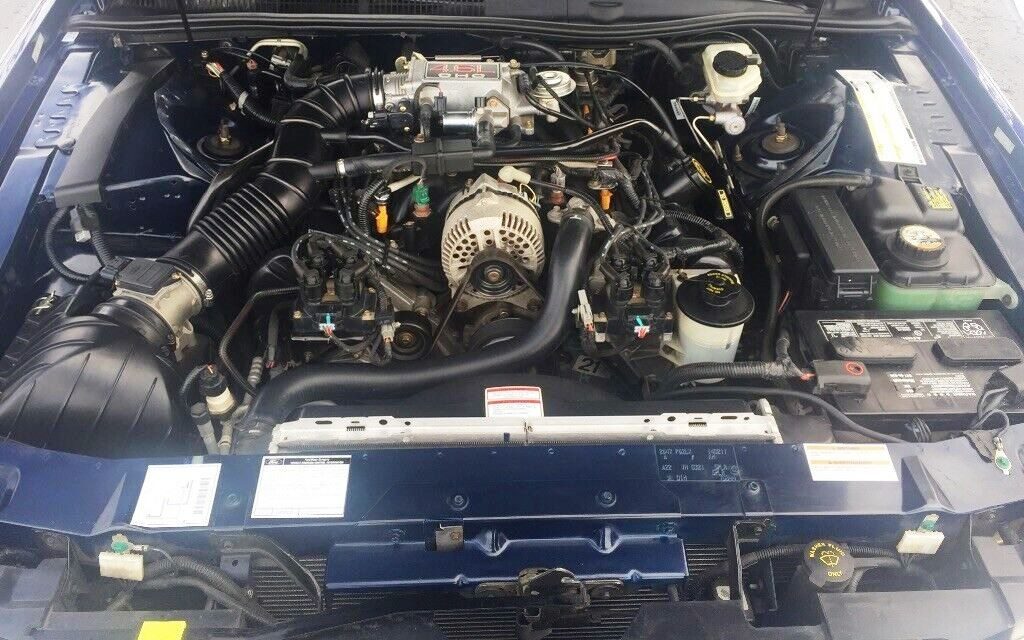 The top end was not changed. That is a stock TB and plenum for the ’96-’97 Thunderbirds/Cougars. It’s an SOHC 4.6 with about 205 – 215 hp IIRC. These were some of the most durable 4.6’s built as they had yet to use the craptasic-plastic timing chain guides and short thread spark plugs. The only issues from the 96-97 years were the plastic coolant crossover (which was covered by a recall from Ford for a number of years), valve seals that would harden up with age and leaky valve cover gaskets that are a pain in the butt to change due to the width of the motor. Once those issues are handled, the motors are good for as long as you care to drive and maintain.