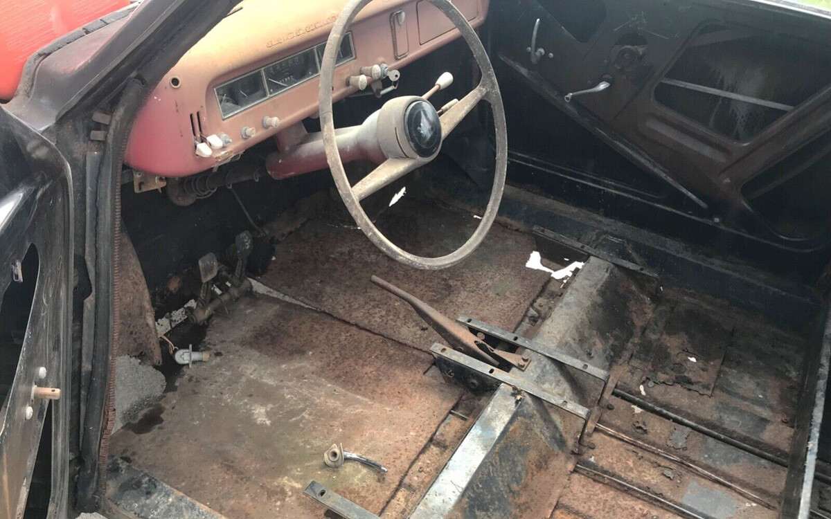The interior is a blank slate but that doesn’t mean that the next owner will put a set of Pinto bucket seats in there, hopefully. The seller has several photos of parts that are included and there may be one showing the bottom of a seat but I can’t tell. They do say that the front floor was cut out and that’s just a piece of sheet metal lying on the floor in the photo above. There will be tons of work to do on this car, but it’ll be worth it when (not if, when) you take first place at a car show.