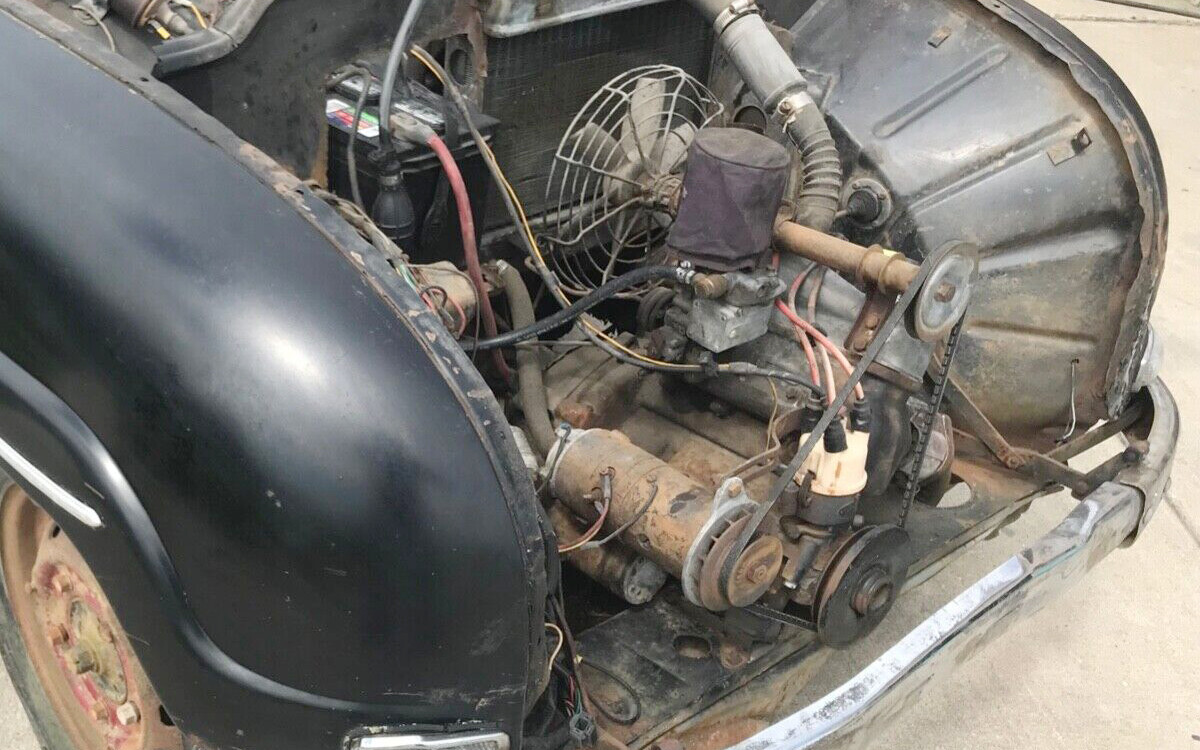There is no V4 here, this is Saab’s famous 748-cc two-stroke triple, which had 33 horsepower and the seller says that this one runs and the car moves under its own power. They have extra engines and all kinds of parts that go with the sale. Have any of you owned an early Saab like this 93F?