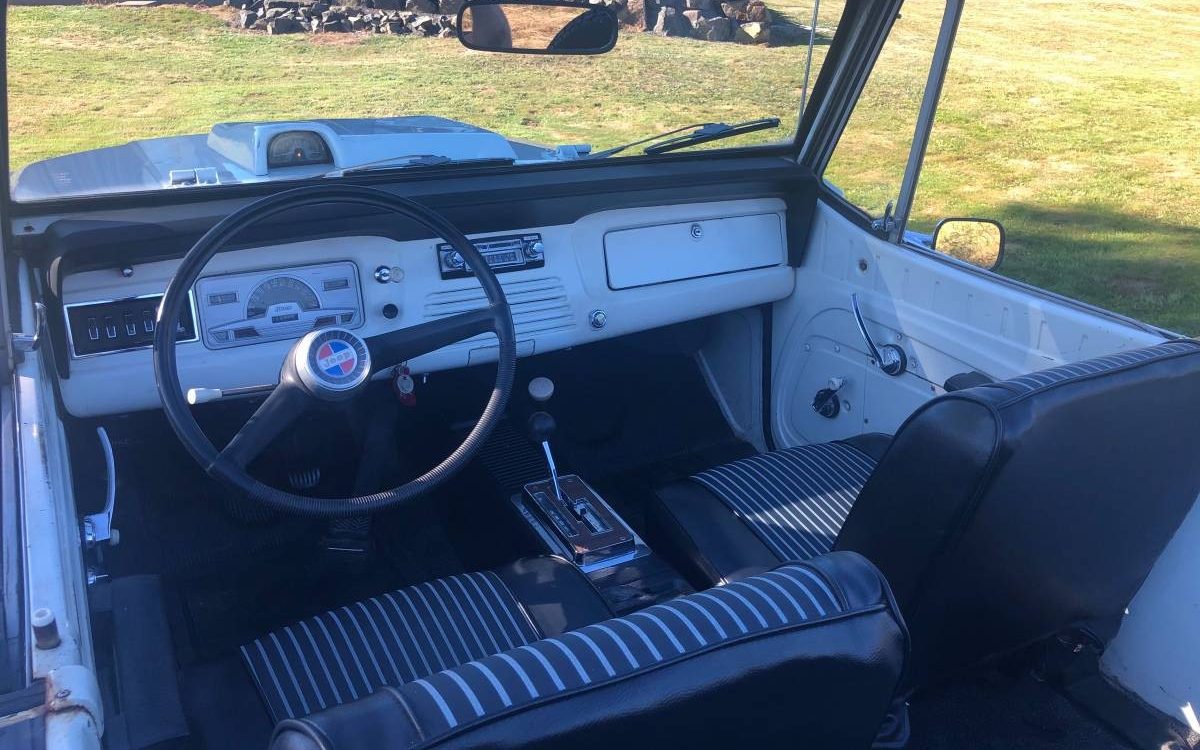 The standard engine for the Hurst Edition was the “Dauntless” V6. According to Hemmings, the powerplant was good for 160 horsepower and 235 ft.lbs. of torque. They go on to say “…the Jeepster’s curb weight is only around 3,000 pounds, so acceleration is good…The GM-designed V-6 is perfectly comfortable at highway speeds, so it’s possible to drive to out-of-state meets.” The seller doesn’t say too much about the mechanical condition other than it runs and drives great for its original state. By looking under the hood you can tell the alternator and battery are fairly new and it appears to be a driver-quality engine compartment.