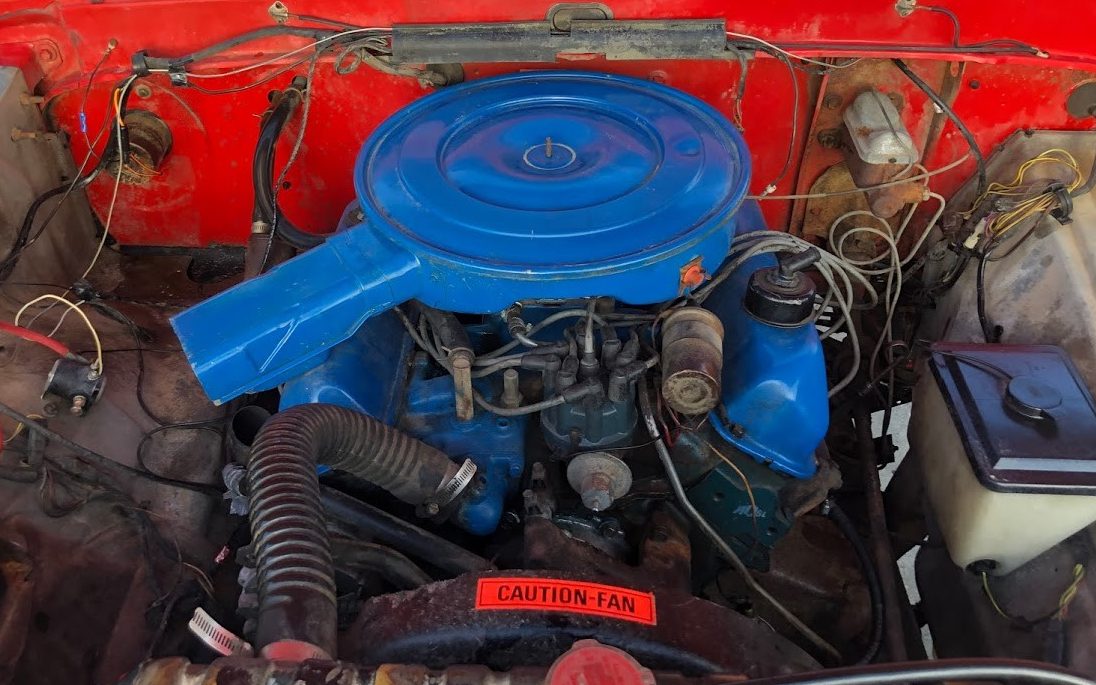 The engine is a 360 cubic inch FE Ford and is said to be original to the truck. It features about 91k miles and is said to run strong. This truck has sat for a while, but the original carburetor was replaced along with a new fuel pump installed. The fluids and filters have been changed and the truck says “fires up and runs strong.” The truck has an aftermarket exhaust, but with a truck this old, that’s to be expected.