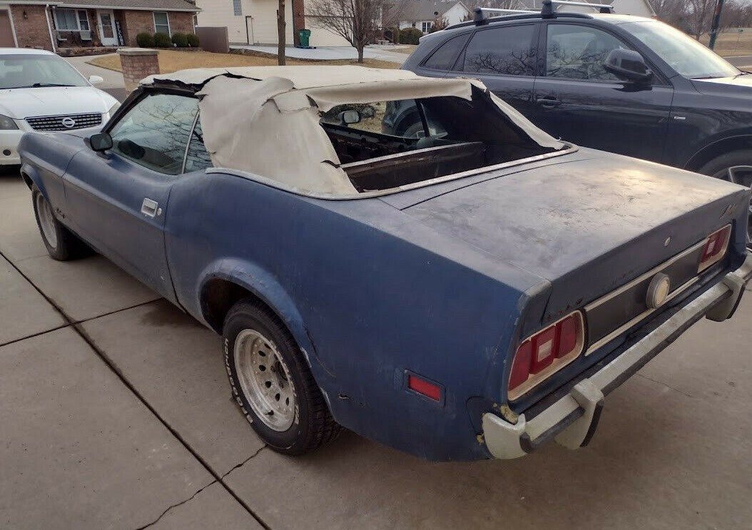 In 1973, things were about to change for the Ford Mustang. After starting the “pony car” revolution in 1965, the first generation was about to call it a wrap. The car had gotten bigger (and bloated) over its first nine years, so a smaller, leaner Mustang II was just around the corner (timed perfectly for the upcoming OPEC oil embargo). This ’73 convertible would be the last drop-top for the Mustang until 1983 and this one is going to need a lot of work. From Rose Hill, Kansas, this project pony is available here on eBay where you can buy the car today at $3,250 or submit an offer.