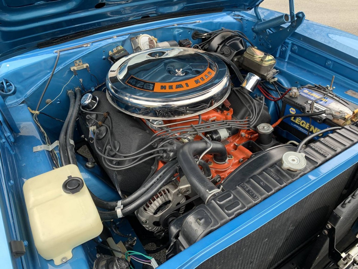 With 83,000 miles on the odometer, this car looks well-kept for its age. The body, paint and interior all look good with only one respray of the B5 Blue coating over the past 53 years. It’s otherwise said to be original and has never been restored. We’re told the car is listed in the Chrysler Registry which would substantiate it being one of s few dozen built this way. Beside the automatic tranny, it comes with power steering and brakes and – apparently seldom ordered back then on the Charger – power windows.