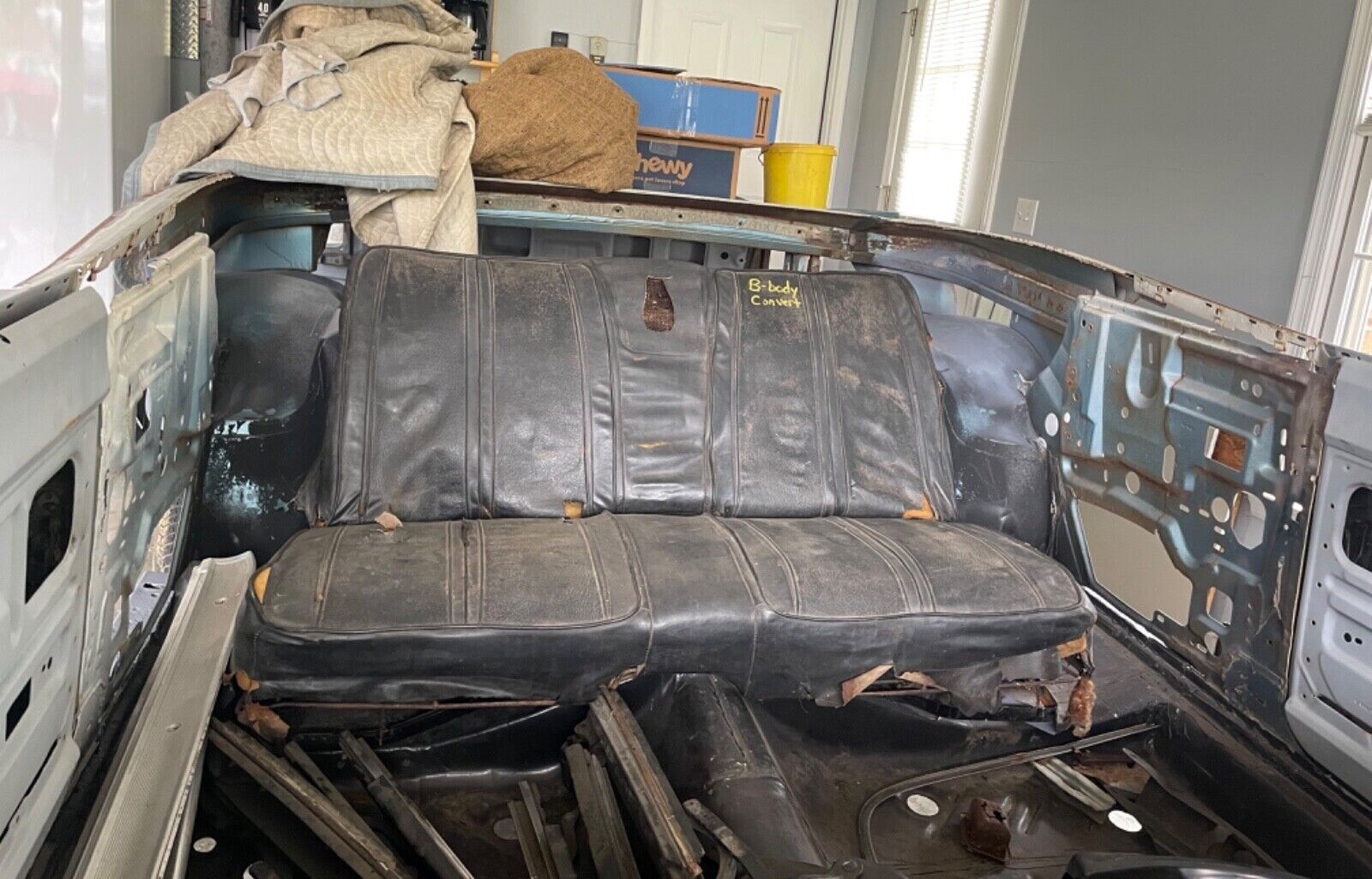 Quarter panels have been trimmed to fit a convertible. Says who? I can see all sorts of problems with this non number matching cobble of a hodgepodge. I’d say that whatever the thinking is on what it will cost to put back together, add at least 50% and double the time – but it still won’t be worth a king’s ransom when done.