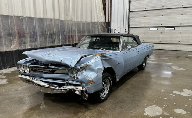 This 1969 Plymouth Sport Satellite was a great car – until it came into contact with a deer or a telephone pole. Only 818 of these convertibles were produced, and the numbers are even fewer with a 383 cubic inch V8 and 4-speed manual transmission combination. Fortunately, the damage seems to be limited mostly to the front clip sheet metal. So, if there is no structural damage, this could be a viable project. Located with a dealer in Granite City, Illinois, this needy drop-top is available here on eBay for $21,900 OBO. Many thanks to “Curvette” for this cool tip!