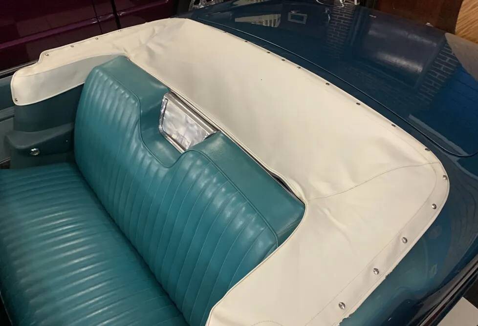 The turquoise finish is resplendent in depth and shine in what would seem to have to be a respray but there’s no word on that front. The same can be said for the chrome and trim, it’s all in fabulous condition. There is no indication of damage, panel misalignment, or corrosion – clearly, the 880 has been well stored. Both the white folding top and tonneau cover show like new. Two images of the underside are included, and while not very revealing, no indication of a problem is evident.