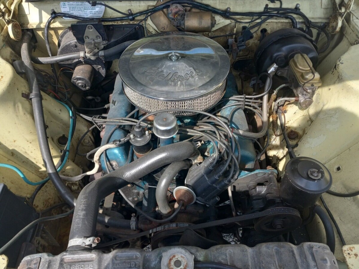 Judging by the master cylinder this one has power front disc brakes. If original they’re 4-piston Bendix fixed calipers. Parts are available but not cheap. (Mine has 4 wheel manual drum brakes to go along with the 343 V8 – scary!)