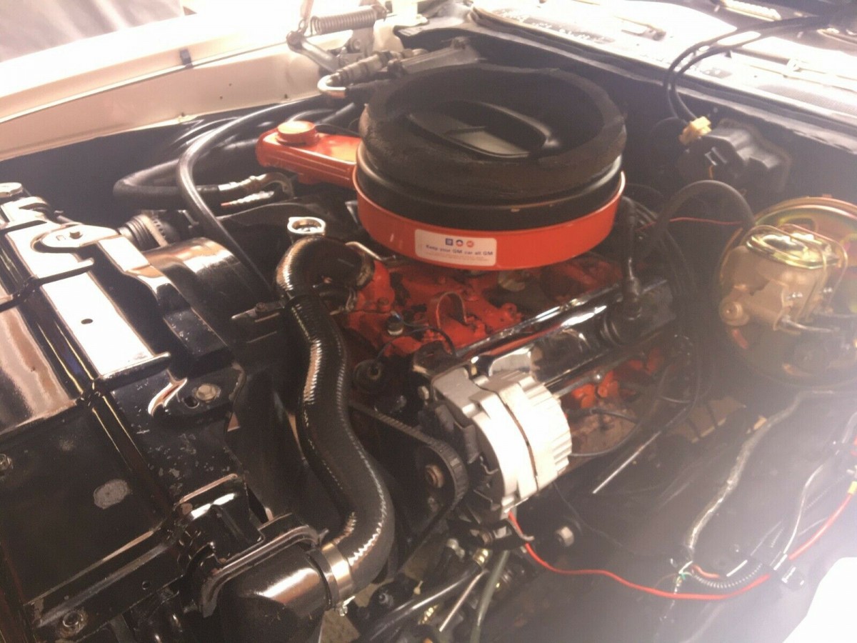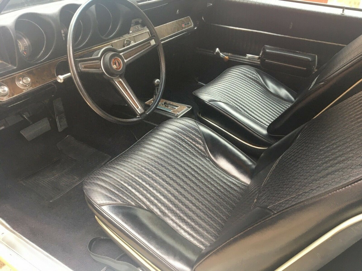 Based on Oldsmobile’s historical company records, only 205 of the 906 Oldsmobile Hurst/Olds 442 cars were equipped with air conditioning in 1969. This car is one of them. The car is painted in Cameo White with Firefrost Gold accents. The functional “MailBox” hood scoops give this car away at any distance. The black interior looks nice with bucket seats, Hurst Dual Gate Shifter and rear seats that appear to never have been sat in. The carpet, dash and door panels look good also. Much of the interior is original and has not been refinished or restored.