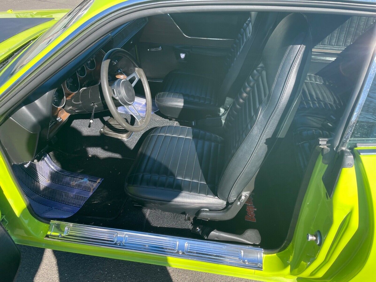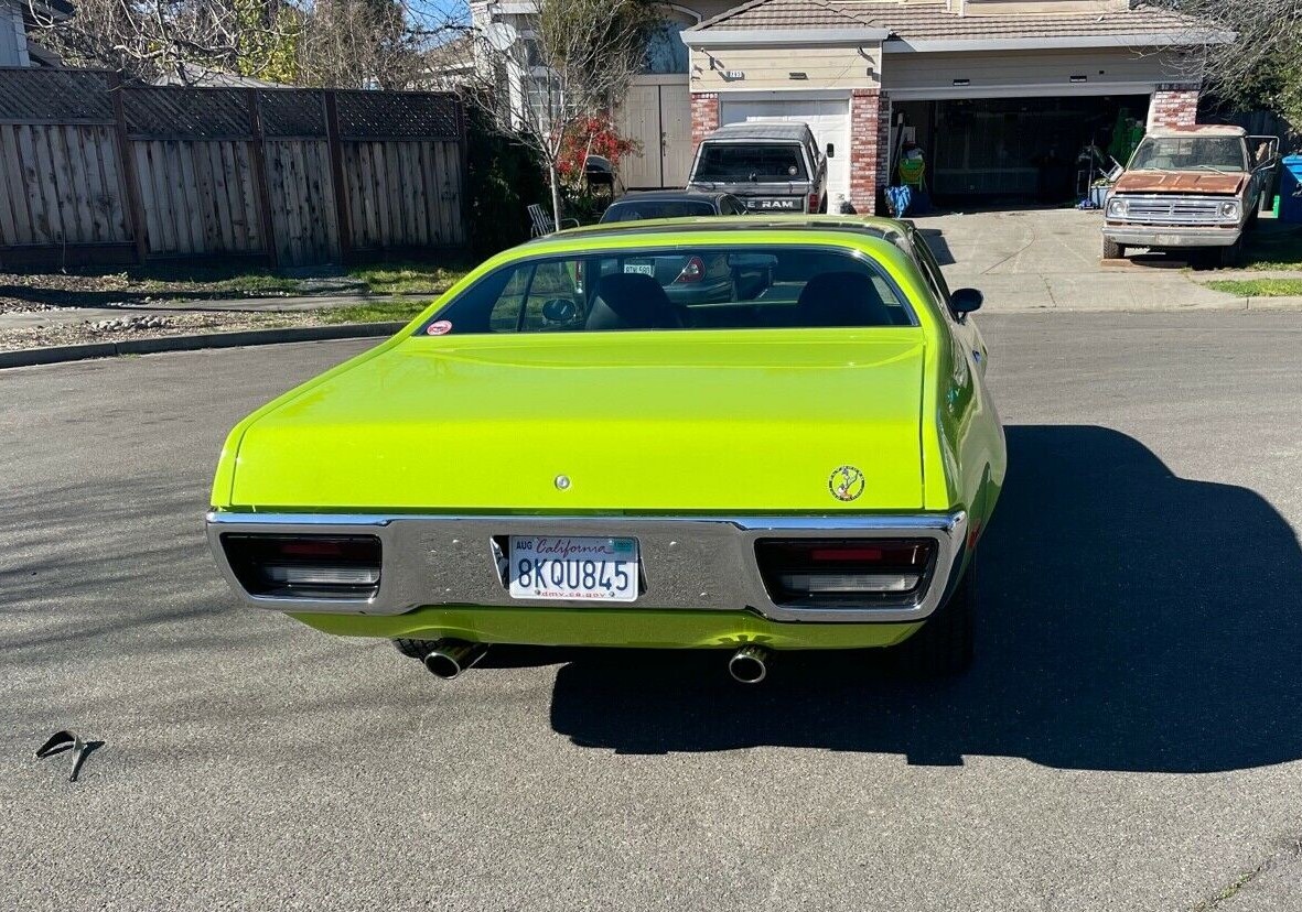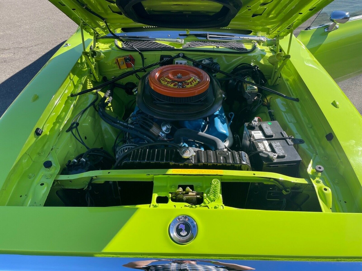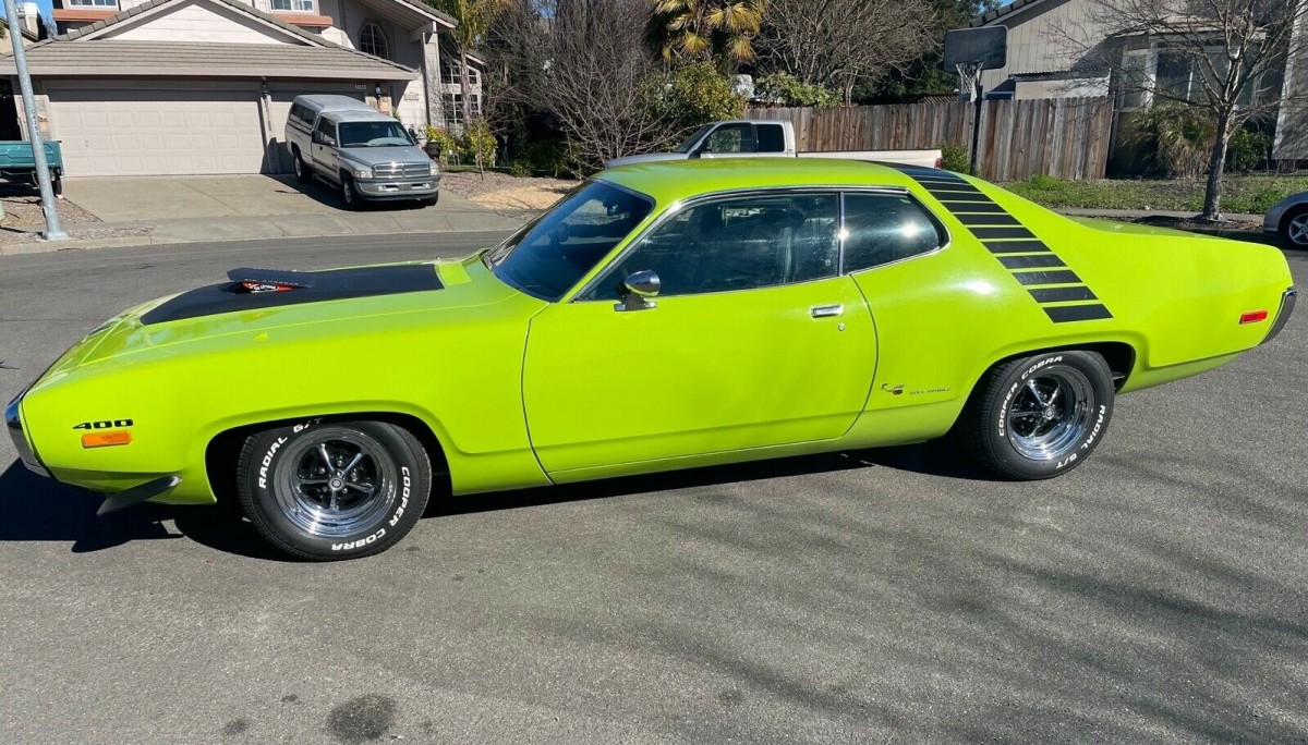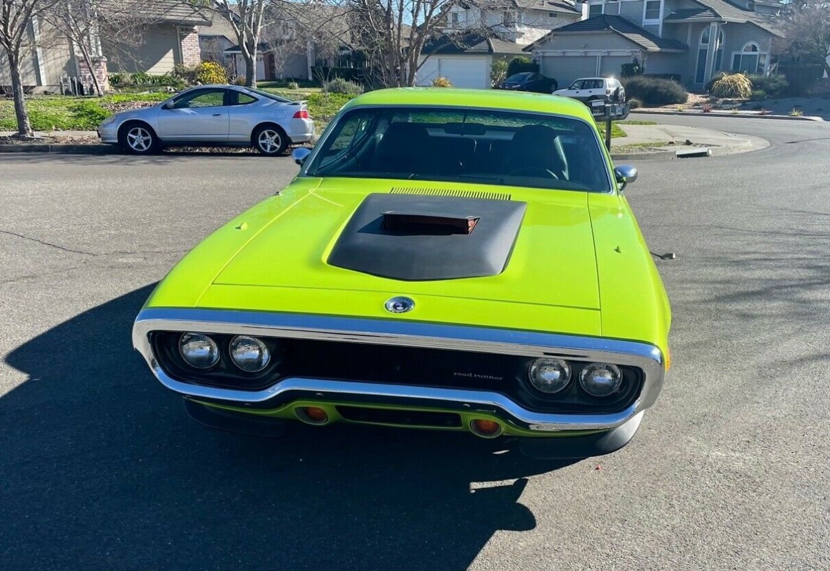 We assume the seller of this ’72 Road Runner bought it for the car show circuit and has only owned it for about a year. A back injury has prevented him from enjoying the car, so it’s up for sale again. While the car is striking in appearance, the paint appears to be one of Plymouth Hi-Impact colors, Lime Light, from 1970. Perhaps the car was special ordered in this color as those paint schemes were retired after 1971. Or what may be more likely is the car has been restored, right down to the paint in the engine compartment as well as the trunk.