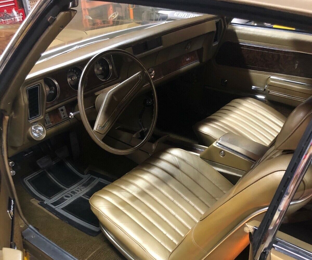 This 442 is finished in Gold, but I haven’t been able to determine which of the four shades that Oldsmobile offered in 1970 it is. It changes dramatically under different light conditions, but its overall condition appears to be extremely nice. The original owner treated the vehicle to a repaint in 1973 after some charming individual “keyed” it while parked outside a bar. Replacement stripes were applied at this time, but these have been mounted slightly higher than usual, as the included report states. The original panels are as straight as you are ever likely to find in a classic of this vintage, and there’s no rust that could cause a buyer sleepless nights. Adding to this car’s appeal is the original owner’s decision to order the car with a Gold soft-top. Its condition is excellent for a survivor-grade car. The trim and chrome are spotless, and I can’t see any flaws in the glass.