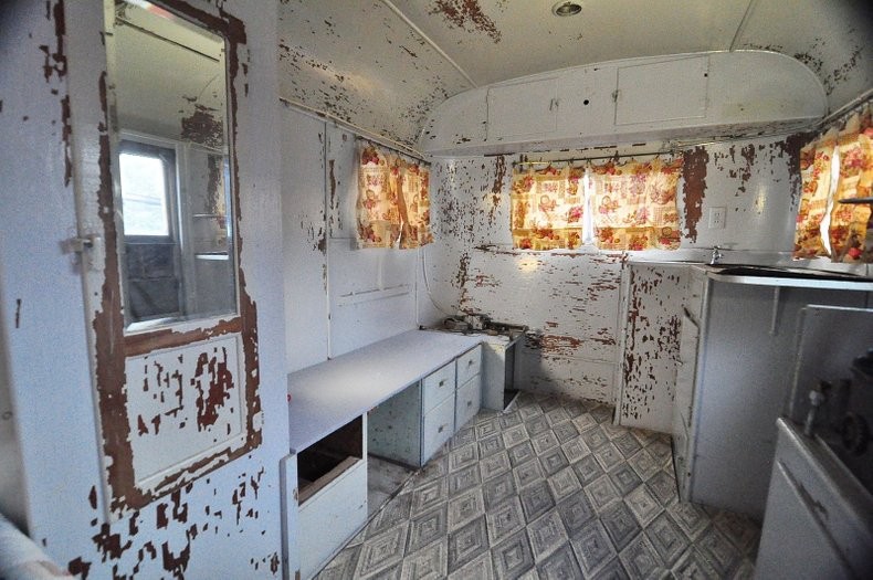 This is basically a blank slate from which a person could design a very economical ‘restoration’ with upgrades due to time/technology. New stove & fridge, design a fold-away bed setup, do something pleasing with the walls, then clean up the exterior. (Can that aluminum be polished like an Airstream?)