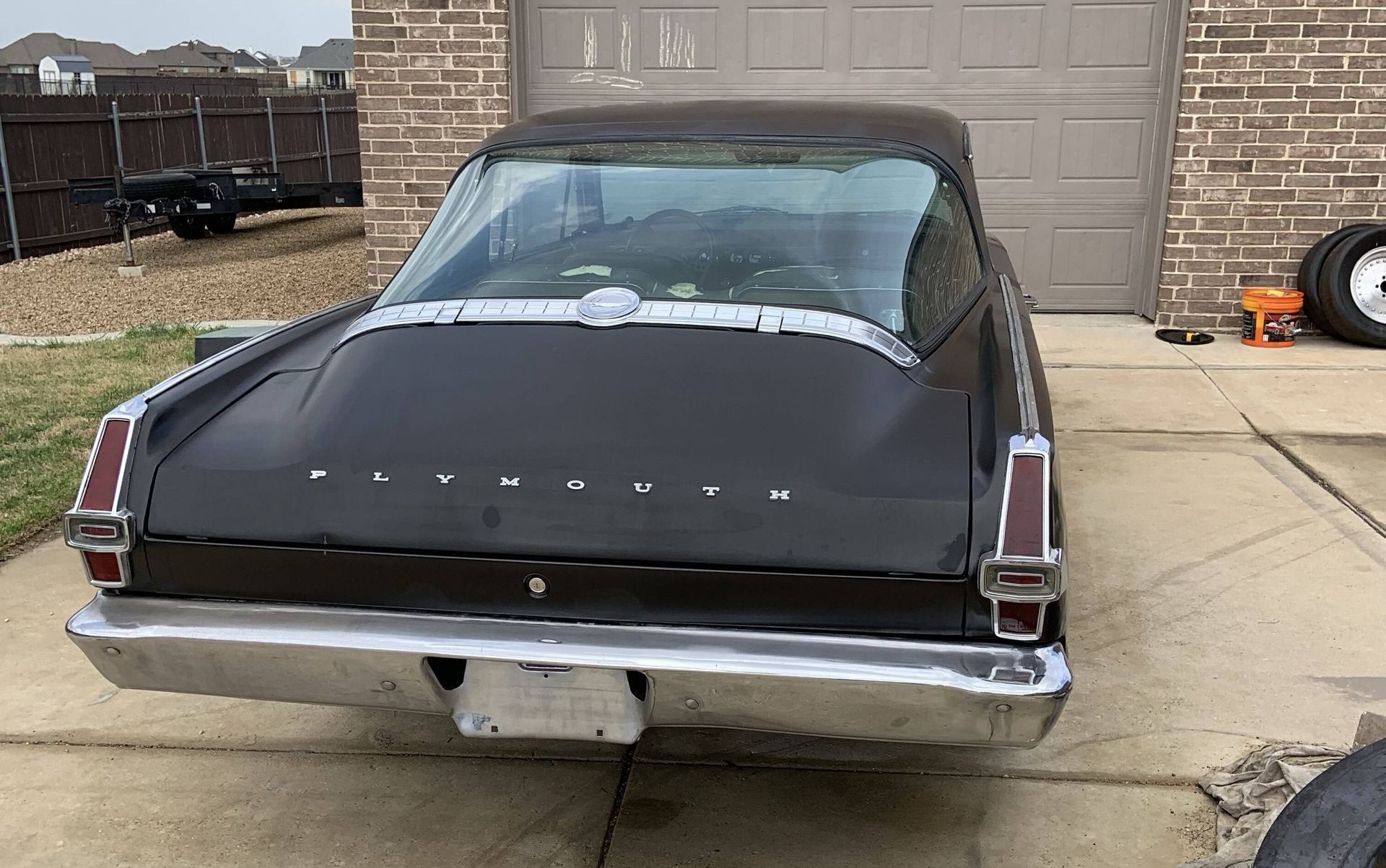 Styling lines pass through the cleverly molded glass, tapering rearward to the branded trunk lip. Bright trim adds some class, and the tail lights echo the Plymouth logo with some space-age flair. Will this upgraded classic sell for more than the sum of its parts?