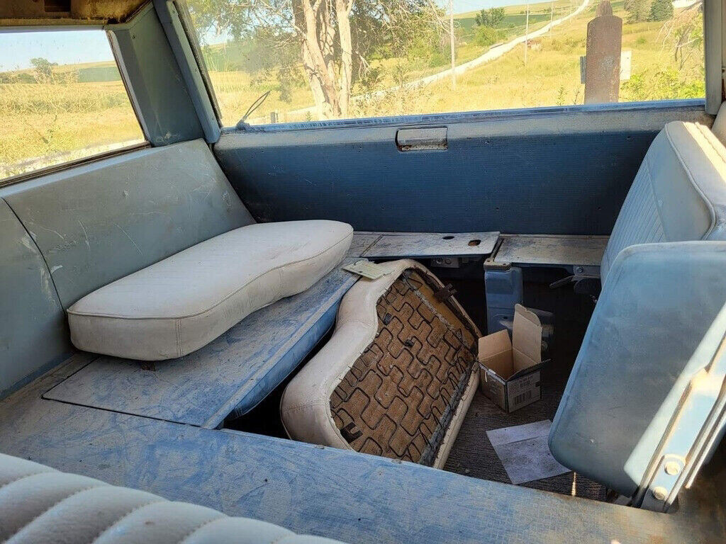 You could find the Country Squire in Ford literature through 1991, after which the station wagon was retired in favor of mini-vans and SUVs. But in their heyday of 1968, Ford sold a ton of these big transport. If you only needed seating for six, more than 57,700 copies were built to choose from. But if you had a small harem, the nine-seater saw a production of 34,000 units. Back in the day, this Squire was probably quite the looker, but today it’s hard to tell what the original color was. And the imitation wood on the sides is all but faded away and I’m told it’s more expensive to replace now than just paint. Much of the interior looks rough, too.