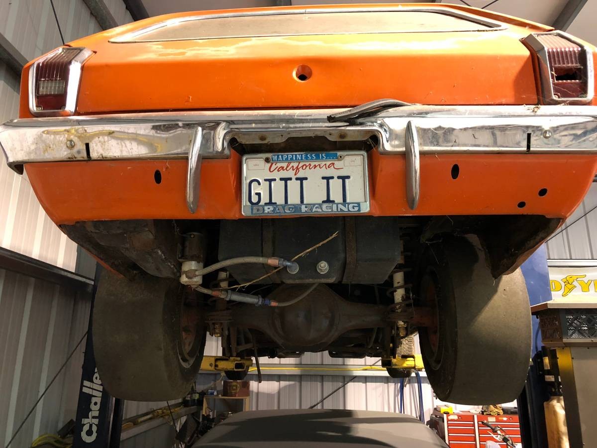 Check out the camber on those front wheels! Imagine what it would look like sitting on the ground. Vega’s were not known to keep their alignments, and with the front end lifting off, like it would most likely do in a 10 second quarter, it will need a lot of straightening and reinforcing to be safe on a track. Or street. Maybe call this one a Kam front!