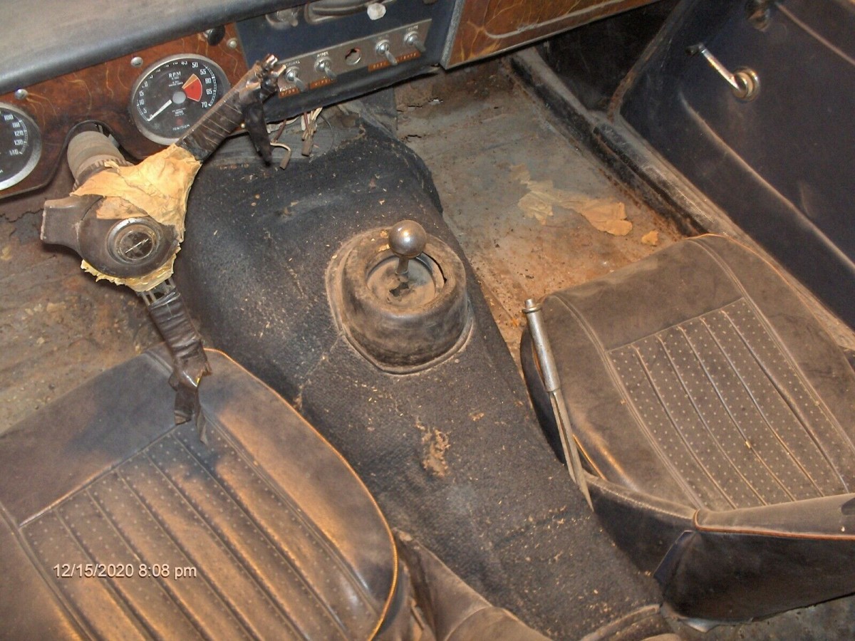 You have to wonder what mangled the steering wheel like this! Especially on a car where the interior appears intact enough to use on a driver-quality refurbishment. The odometer is showing 70,460 miles which I can believe based on the wear. I think those are rust holes in the front of the passenger side floorboard? Trivia time; did you know that later Big Healeys (I’m not sure about earlier ones) came with an asbestos heat shield under the driver’s floorboard due to the exhaust heat that would be transmitted to the driver? Trust me, it was really necessary on the 100-6 I daily drove for two years. The BJ8 (3000 Mk. III) models like this one finally did something to improve the ground clearance in the rear, but I think the exhaust pipes are still right there under the driver’s floorboards.