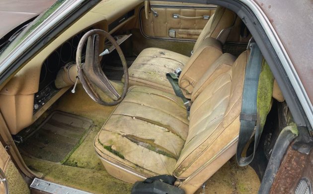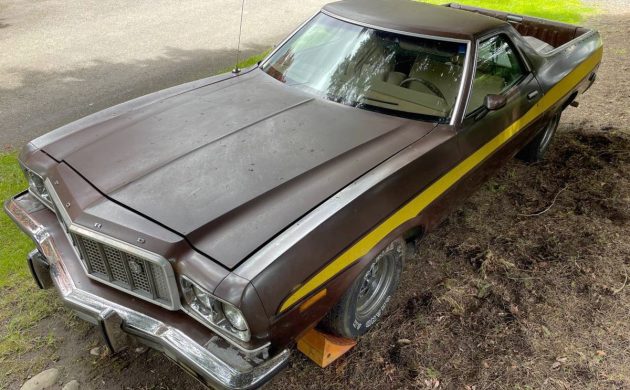 This monster is Ford’s 460-cu.in. OHV V8, which by 1974 had around 200 horsepower and 335 lb-ft of torque when it was last driven, which was several years ago. It’s sent through an automatic to the rear wheels, and this Ranchero GT has been sitting outside for a while. It isn’t currently in running condition, but I have a feeling that someone will save this once very nice Ranchero GT. I’d do a full factory-correct restoration; how would you bring this one back to life?