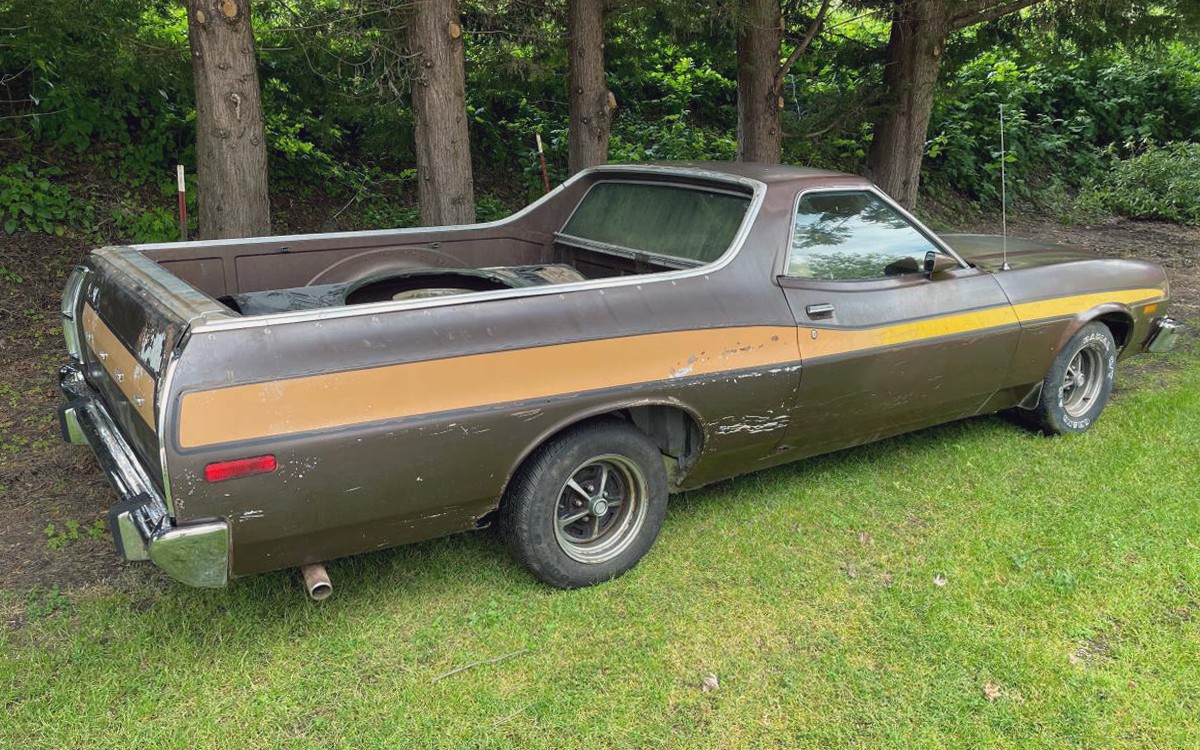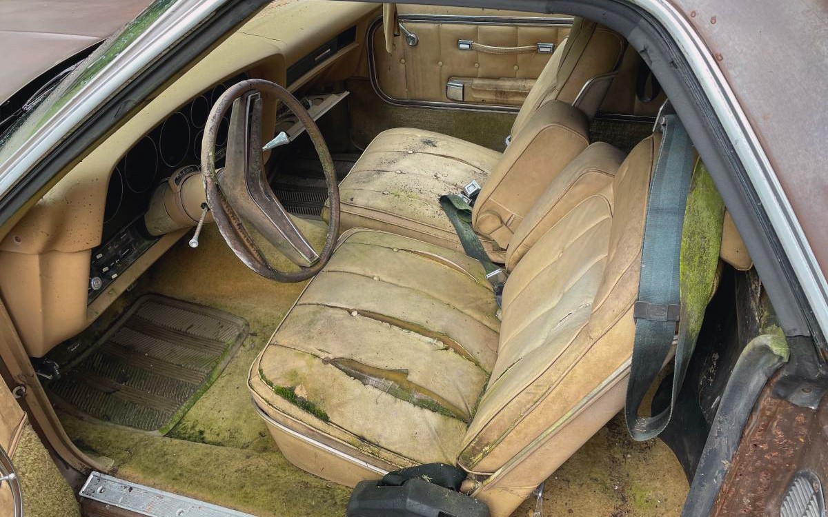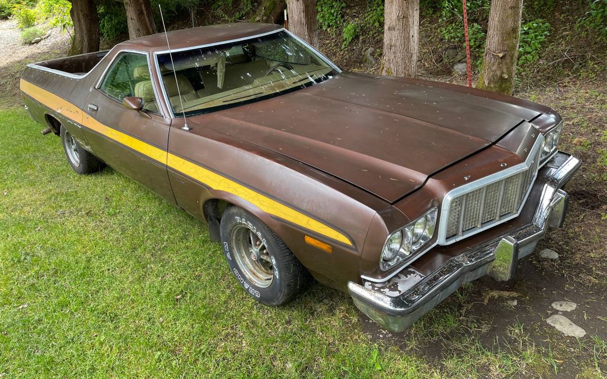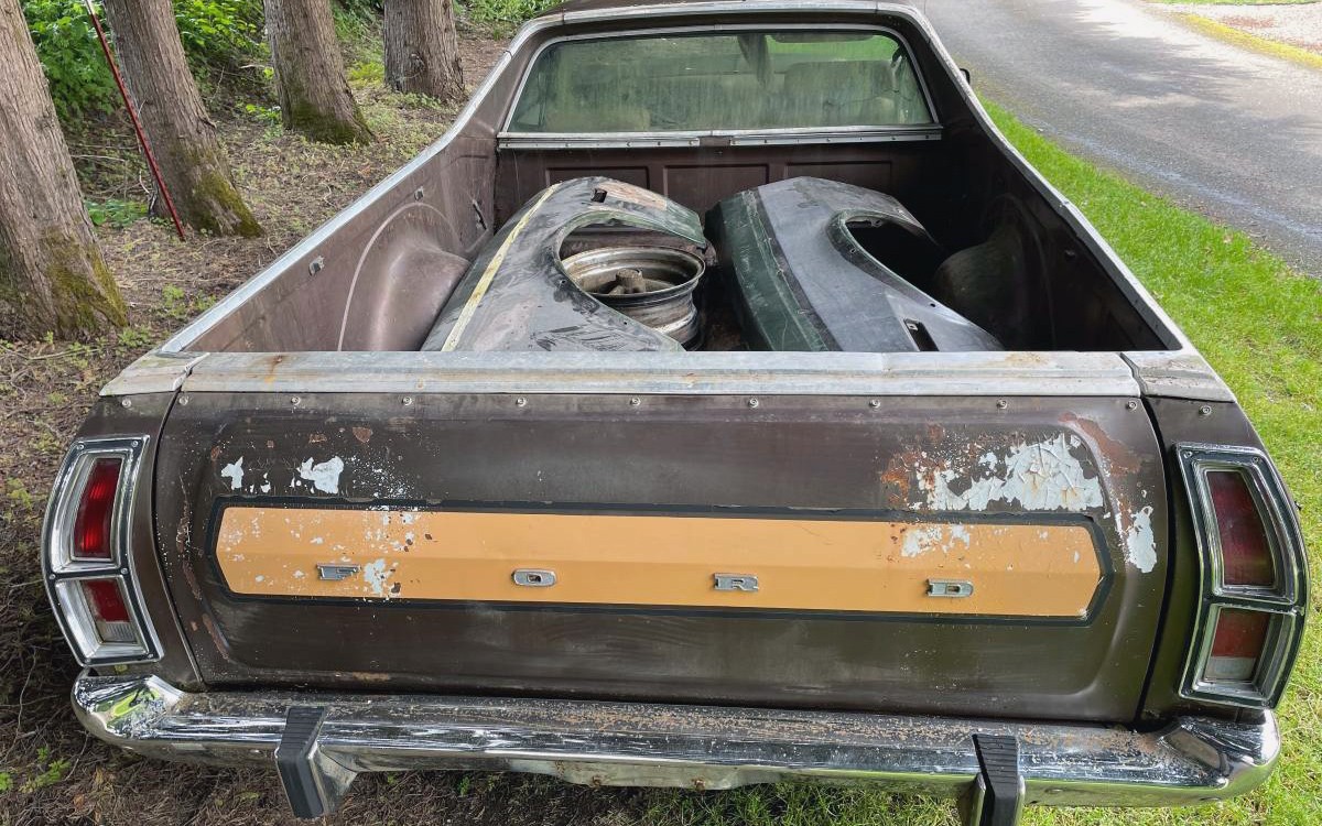 This monster is Ford’s 460-cu.in. OHV V8, which by 1974 had around 200 horsepower and 335 lb-ft of torque when it was last driven, which was several years ago. It’s sent through an automatic to the rear wheels, and this Ranchero GT has been sitting outside for a while. It isn’t currently in running condition, but I have a feeling that someone will save this once very nice Ranchero GT. I’d do a full factory-correct restoration; how would you bring this one back to life?