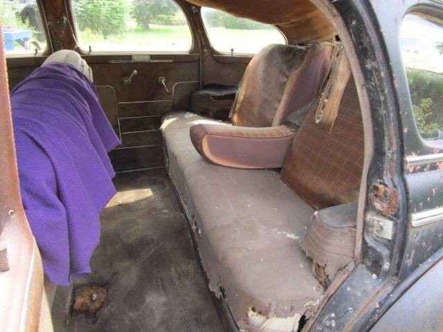It is the same story in the back seat. Thankfully the old material leaves the new owner a pattern to work from if they decide to bring the car back to original condition. If you squint a bit, you can imagine how nice these cars were on the inside. You would be hard pressed to buy a modern car with more legroom in the rear. I heard someone recently remark that car development should have stopped before World War II. The reasoning was that all the components were built to last and passenger comfort has never been surpassed. There is a lot of truth in that argument.