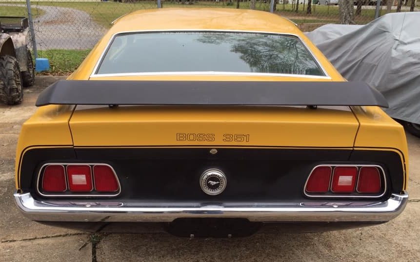 Right off the bat, this Mustang is claimed to be a 10K mile example. The seller states that he bought it from the original owner and the mileage is documented. While an image of the odometer is not exactly documentation, he does say that he has, “boxes of little things that were changed with original parts down to hose clamps, even yearly inspections from DMV, an appraisal, shop receipts, it’s really unbelievable the stuff I have with this car. There’s a lot more information to share but this ad would go on and on“. The seller claims this as a very original example and the only detraction noted is some surface corrosion around the rear quarter window. He also mentions that there is some rust under the hood at the “back of the ram air” due to a nesting bird(?) but there is no included image. The Marti report, not included, references this Boss as one of 67 finished in Medium Yellow Gold. The finish looks fine, especially considering this car’s age, but of all the colors that could have been chosen…well, it was the ’70s and this Ford is a fine representative of that era.