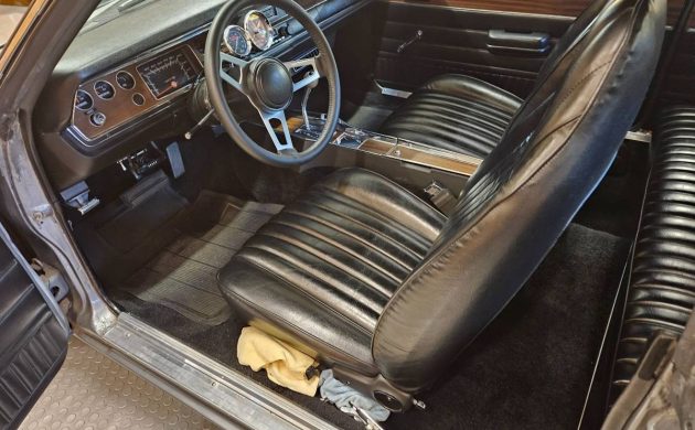 Air conditioning, bucket seats, a console, a sports wheel, and a radio might not seem like much by modern standards, but it lifted this Dart above average in 1973. The seller has installed a couple of additional gauges, which I would probably remove to protect the car’s authenticity, but beyond that, this interior needs nothing. The Black vinyl upholstered surfaces are free from wear and distress, and the carpet looks extremely good for its age. The faux woodgrain, dash, and pad are excellent, and there is no evidence of deteriorating plastic.