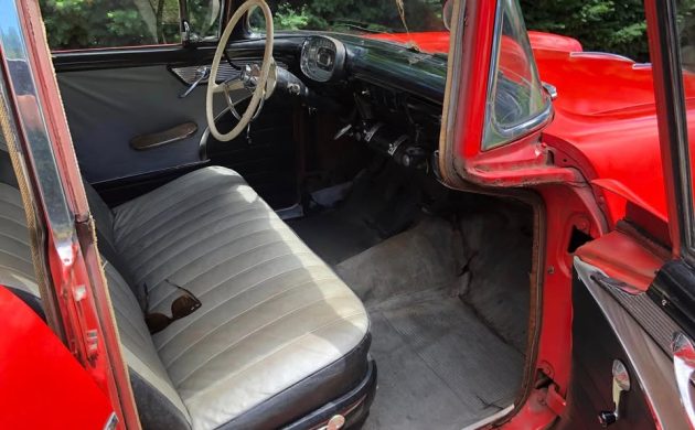 Vauxhall’s Victor was produced from 1957 until 1978, though the F series, such as our subject, was only available through 1960. The British Vauxhall Motors, LTD, was purchased by General Motors in 1925, and by the 1950s, there was some “sharing” between the two companies going on. While resembling a ’56 or ’57 Pontiac, it has been said that the ’55 Chevrolet BelAir was the influence for this first edition of the Victor. I have to say, however, that the backend looks more like a Buick knock-off. Initially offered only as a four-door sedan, a station wagon was offered in ’58. Total F Series production reached about 390K units, but I could not uncover a production stat for the ’59 model. The seller tells us, “This is a very nice low-mile example,” with only 45K miles showing on its odometer. To put things in perspective, this Victor is 177 inches in length and rides on a 98-inch wheelbase, while a 1955 Chevrolet BelAir stretches out to 195.6 inches, spread over a 115-inch wheelbase. The comparison to a ’55-’57 Pontiac is even more stark.