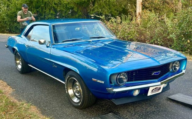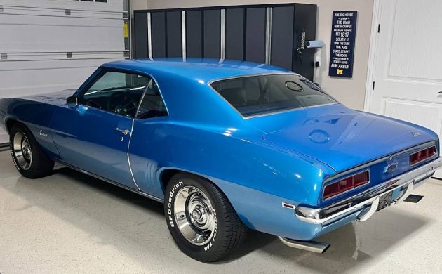 The 1969 model year marked the end of the line for Chevrolet’s First Generation Camaro, and it had done enough to justify the development of a replacement that hit showroom floors for the 1970 model year. General Motors had Ford’s Mustang in its sights when it launched the Camaro and its Pontiac Firebird cousin. The Ford was an unprecedented success, but as sales volumes fell during the late 1960s, the Camaro gave the Mustang a run for its money. This was particularly true in 1969 when Chevrolet sold 243,085 Camaros against 299,824 Mustangs. Admittedly, the gap was a sizeable 56,739 vehicles, but when you consider that the difference was 251,215 in 1967, it is fair to say that the Camaro had made its mark in the pony car war. The seller states that most of this Camaro’s LeMans Blue paint is original without specifying what areas may have received a touch-up. It shines nicely, with no major flaws or problems. The panels are straight, and the underside shots confirm that this classic is rust-free. The glass is original and clear, and the trim is in acceptable condition for a high-end survivor. Aftermarket additions include the 15″ Rally wheels, the front spoiler, and the LED headlamps.
