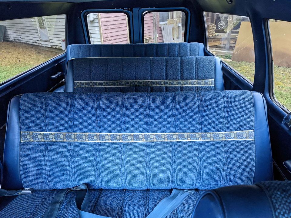 I’d love to know how this Econoline was originally used, as the 12 passenger setup absolutely has to have been for a business or other entity that regularly transported people in such quantities. What else can you think of where a van with this seating arrangement would have been appropriate? The bodywork is laser straight around the rear as well, and I can’t help but wonder if some time with an orbital buffer would make that single stage white paint pop even more. The tinted windows have absolutely helped to preserve the interior, as you’ll see in the next photo.