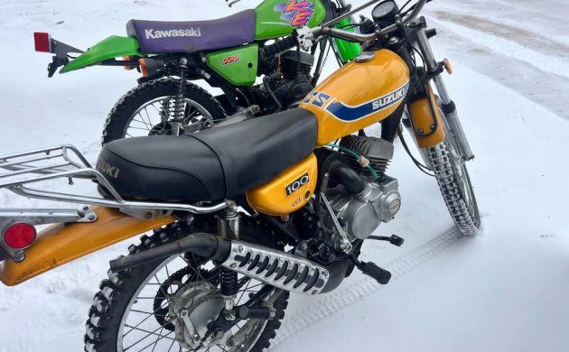 In case you haven’t noticed, prices have gone up for some vintage vehicles over the last couple of decades, says Cap’n Obvious. Sometimes, they seem reasonably priced, such is the case of these four 1970s Suzuki and Kawasaki on/off-road bikes, two 100s and two 185s. The seller has them listed here on Facebook Marketplace in Hilbert, Wisconsin, and the seller is asking $1,250 each. Here is the original listing, and thanks to Lothar… of the Hill People for the tip!