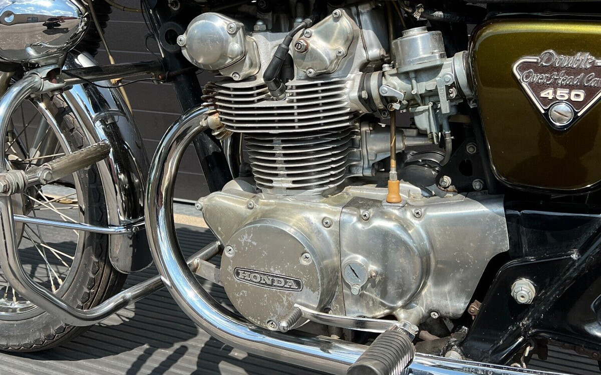 With as many as these that were sold, not all are relegated to that pile of scrap Asian bikes we see from time to time, someone was bound to keep one nice. Initially, as mentioned, this was a direct kick in the gut towards British twins. Yamaha did the same thing with the 650 twin. The 450 predated them all, and was Hondas biggest, and therefore best offering. The 750/4 changed all that, but for a 450, it could keep up with most 650s, and didn’t leak oil. My 1st road bike was a 1967 CL450, I got from a guy who owed me money, like $200 bucks. Got my 1st speeding ticket with that bike( 80 in a 55) when radar was in its infancy. To be honest, these are so-so bikes, with all the qualities of a twin, British or otherwise. Didn’t care for that bike, handled and stopped poorly, uncomfortable, and vvvvvvvibrateeeeeeeee. The CB would be a more civilized bike, I’d worry about the extra lights, as I think the system is weak to begin with, and with non-existent lighting coils unobtainable, hence sidelining many, it might be an issue. These aren’t arm straightening, slide your azz off the seat bikes, but 43 hp in a light bike was no slouch. Dependable for short rides, as the low miles indicate, Honda speedos rarely fail, but by ’72, 4 cylinders were all the rage, and the steam fizzled on twins. Great find!