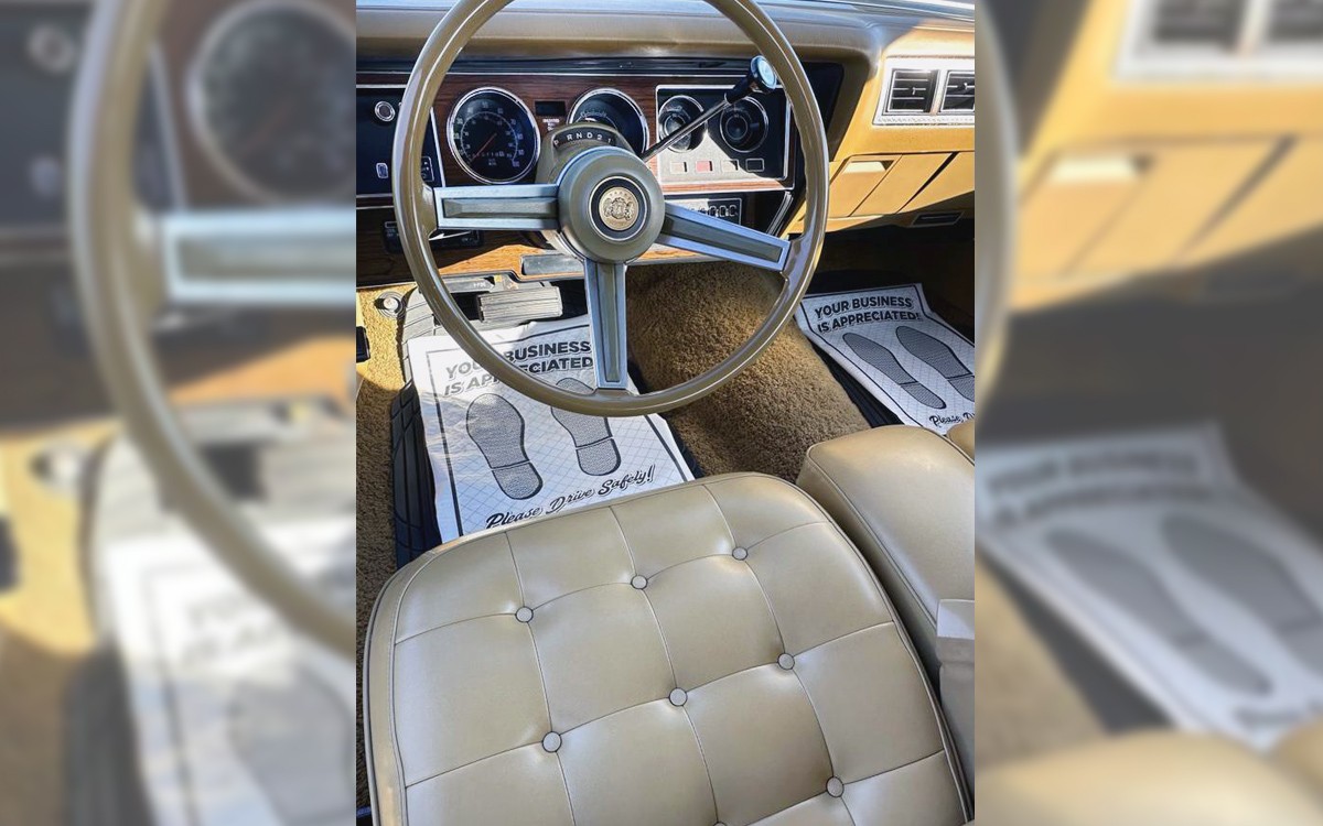 As they say, it is what it is, and what it is, this is one super nice-looking car! The optional “chrome-styled road wheels” are a nice touch and give the luxurious Cordoba a sporty look, or as much as possible. The seller says the factory undercoating is still on the underside, this was a garage-kept vehicle, and it’s like new. I believe it. The Landau vinyl top with opera windows and lights is another nice touch for a car from this era.