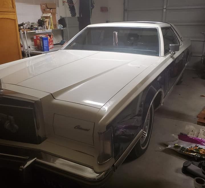 Collectors Series came in navy blue with navy blue top or white with white top. A few medium Blue paint with dark top and interior were also produced. The Bill Blass designer series was also a very popular Mark 5. My thought is that somebody bought the all white collectors series and had it painted to mimic a Bill Blass. The interior appointments and all else looks to be correct Collectors Series. Maybe somebody couldn’t decide which of the two cars they wanted so they tried for bet of both worlds. Whatever the case, it appears to be a very nice car as good a 70s luxobarge a you can get to float down the interstate.