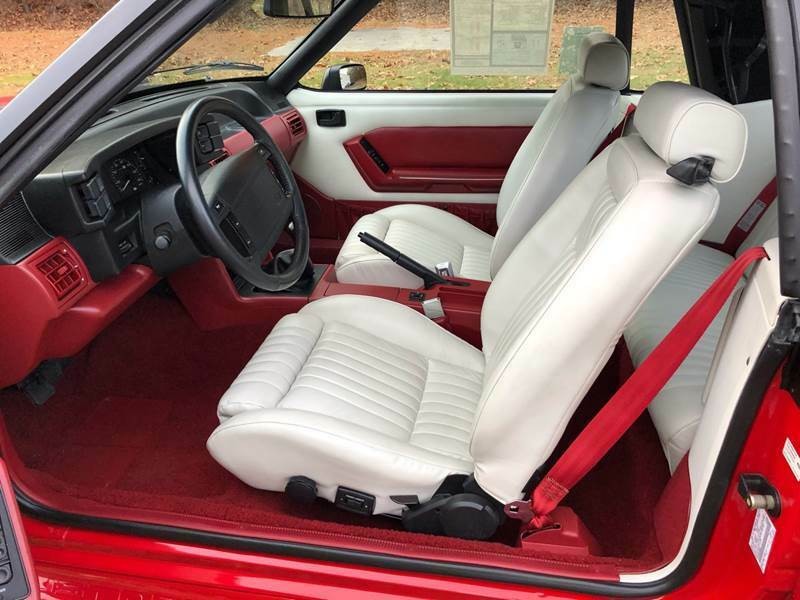 Now, even if you ignored the low mileage for a second (mildly impossible, I admit), this GT checks pretty much every box if building a poster-quality Fox Body is on your list of things to do. Red with white top, GT trim with full body kit, luggage rack, five-speed manual transmission, and a corresponding white and red interior: this is the type of Mustang you would see in the factory sales brochure. Somehow, a previous owner has had the impulse control necessary to not ever drive this Mustang in anger but rather keep it in time-capsule condition.