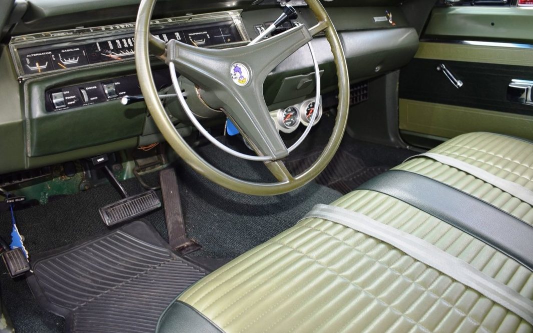 Ray, nearly every Road Runner had a “grandpa” interior. The standard bench seat interior was shared with the base-model Belvedere, with two optional “upgraded” trim options: the bench seat from the mid-level Satellite (which, if my recollection is correct, is what we’re seeing in this car), and a bucket seat version of that same trim. The GTX shared the top-level trim of the Sport Satellite.