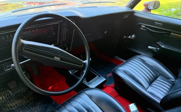 Princely sum but you may be getting the nicest one left. 350/3-speed aside, she sure is clean. Yes, this is the carpet option I thought was also available on ’74s. I liked the ’73 striping better than the ’74 as it retained the SS emblems.