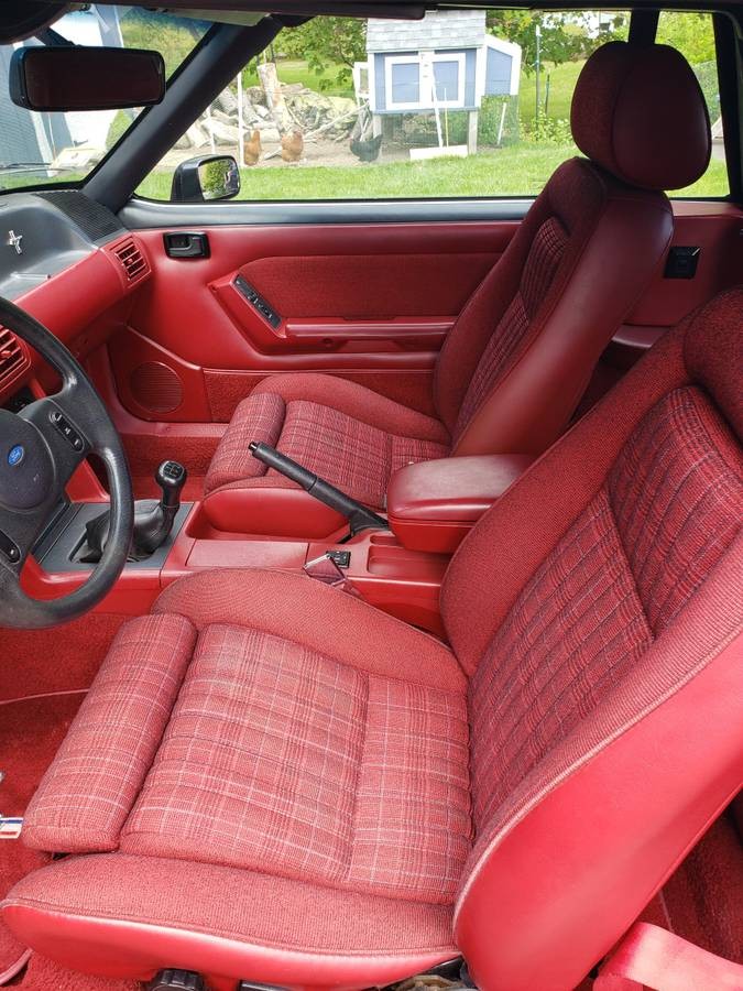 The seller provides no actual details of any value about the car itself, just advising dreamers and low-ballers to stay far, far away. The front fascia looks as good as the rest of the car, with no damage to the low-hanging front air dam and the original Mustang headlights looking quite clear and free of rock chips. The car may not be the GT350 the seller claims it is, but in many ways, it’s actually more desirable: it’s a bone stock Fox body GT convertible wearing great colors and equipped with a manual transmission. All the special lettering and limited production in the world wouldn’t tempt me from buying an example like this if I was in the market for a Fox body.