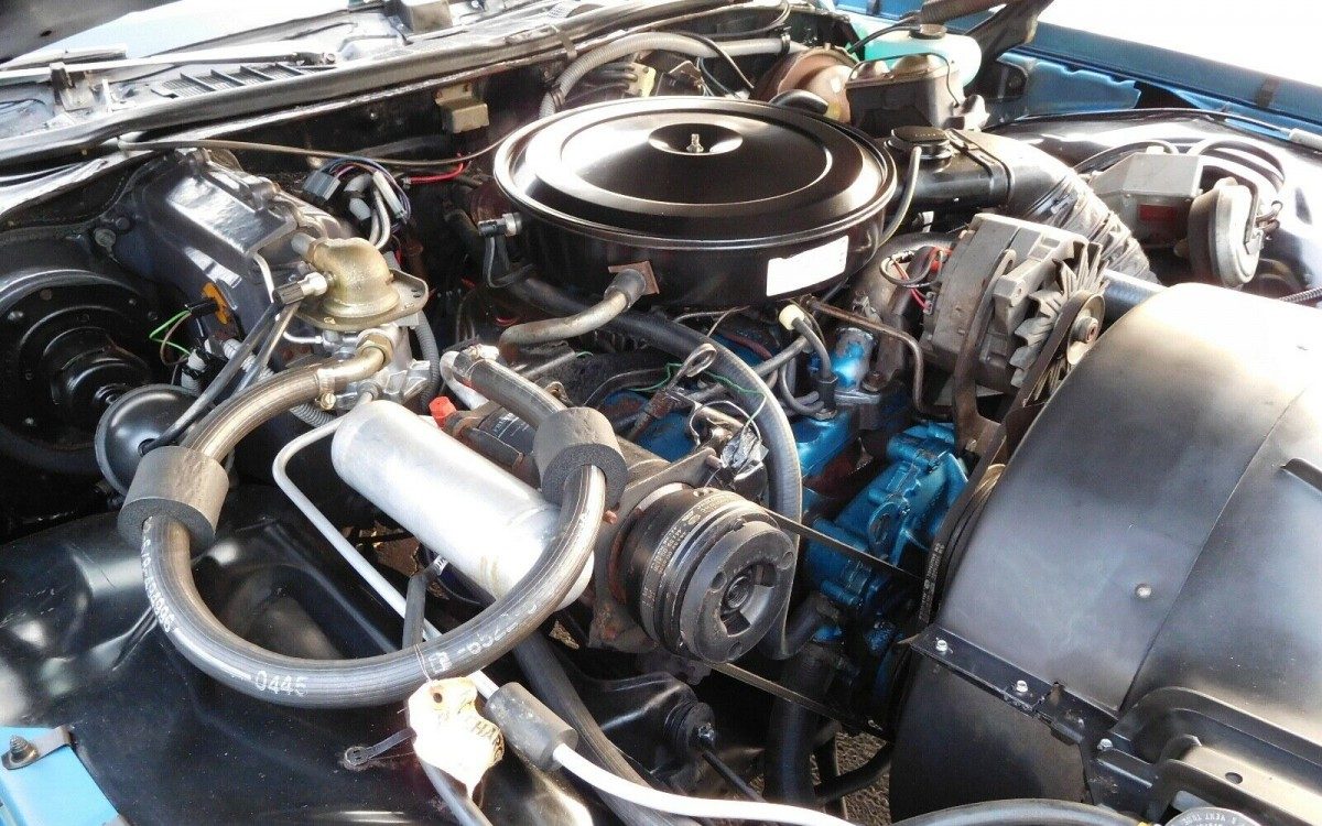 The original L78 400 cubic inch V8 engine equipped with a 4 barrel Quadrajet carburetor sits between the fenders. This engine was the same engine used in the Pontiac Trans Am in 1975. The L78 6.6. liter engine provided a reliable 180 horsepower.