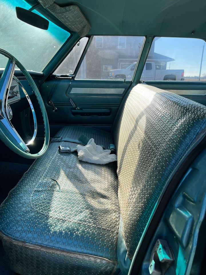 Nice car, basic grocery-getter, and neat to see one in original condition. I’d address the rust, fix what’s needed, and preserve and enjoy it for what it is. The 318 should be adequate for this car, even with the whole family in it. Maybe dual exhaust. A/C would be nice, but if the above comment is correct, would need to be custom made. I love the slipcovers!