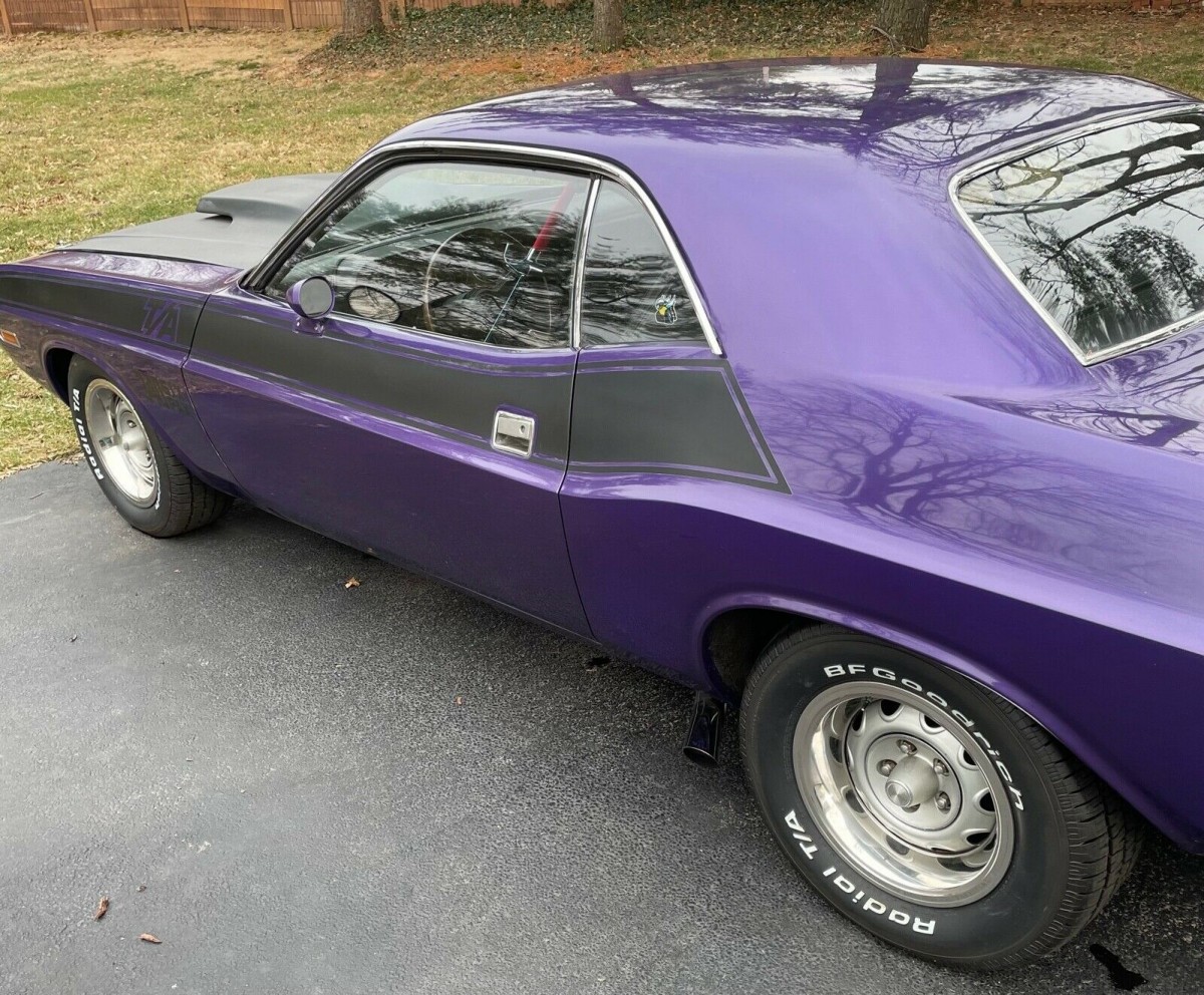 During March and April of 1970, Dodge built the T/A (Trans-Am) to meet SCCA guidelines. The quantities produced paled in comparison to the overall assembles of 77,000 Challengers. The T/A would be one of the first production vehicles to offer different size tires, front and back; E60 x 15 in the front, G60 x 15 in the rear. All T/As came with power front disc brakes, heavy-duty suspension, side-exit exhaust, a fiberglass fresh-air hood, Rallye wheels, front and rear spoilers, and special graphics. With an engine conservatively rated at 290 hp, the T/As were fast, capable of 0-60 in under six seconds and the quarter-mile in 14.5