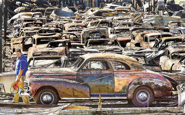 CCC is close to me, and the buildings were wood frame with metal cladding. No sprinklers; this is a very rural area with few regulations, which is what a lot of people tout as a big plus for attracting businesses but which obviously carry risks, as this fire proves. Not only were there no sprinklers, but there’s no hydrant anywhere close, so that didn’t help matters either. On the other hand, look at the pictures of the cars. Paint is gone, glass too from the heat, but it didn’t get hot enough to ignite the tires. In every picture I’ve seen, not only are the tires not burned off, they’re still inflated. So there may be more salvageable than you’d think, as far as mechanical parts. About insurance: CCC is basically like an antique mall where people consign their stuff and get paid upon sale. People who have put their cars there say that they had to sign a comprehensive waiver, holding CCC not responsible for any damage to their cars while at the facility. I hope the car owners maintained their own insurance on their vehicles, otherwise there’s not much chance they’ll be able to collect anything in court.