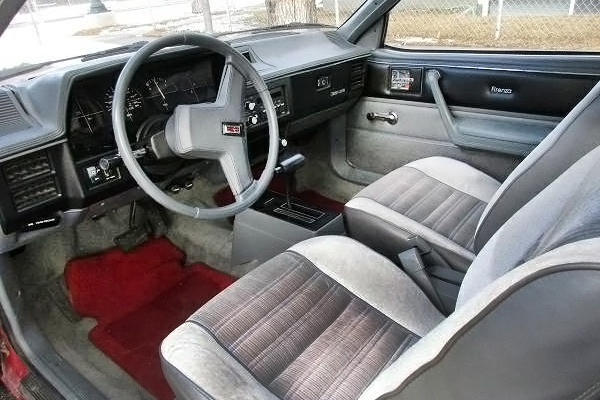My second car was a brand new 1983 white Olds Firenza hatchback with broad two tone orange striping and “FIRENZA” in white letters emblazoned on the lower sides of the car. It was nicely appointed with burgundy interior and plush velvet seats, a roomy hatch area with roll retractable cover. It came with the 1.8L tbi engine, that blew the head gasket twice in 3 years because the iron block and aluminum head were incompatible, but I did love the car despite the ribbing I took from my friends for its loud looks!